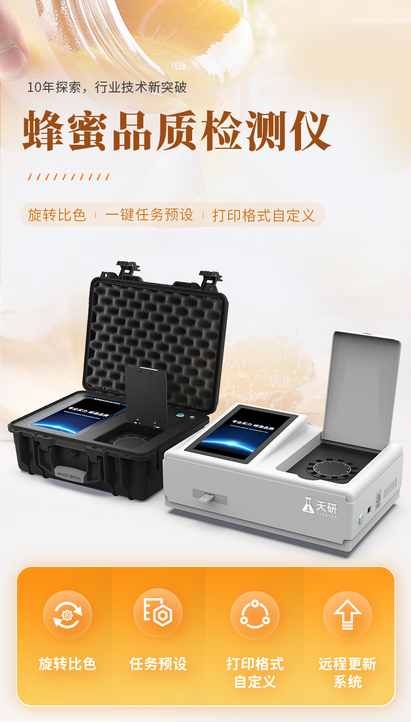 產(chǎn)品介紹: 山東天研儀器有限公司生產(chǎn)的高智能蜂蜜檢測(cè)儀為集成化食品安全快速檢測(cè)分析設(shè)備,采用臺(tái)式一體化設(shè)計(jì),可快速檢測(cè)200多種食品安全項(xiàng)目,包含非食用化學(xué)物質(zhì)、濫用食品添加劑、農(nóng)藥殘留、獸藥殘留、重金屬、病害肉、營(yíng)養(yǎng)強(qiáng)化劑、抗生素類(lèi)殘留、激素類(lèi)殘留、真菌毒素類(lèi)殘留、化學(xué)類(lèi)殘留等項(xiàng)目的定性