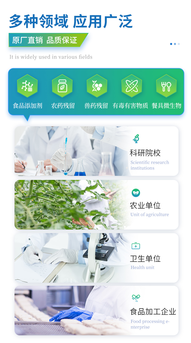 | 儀器采用臺式一體化系統(tǒng)檢測技術(shù),將分光光度模塊、新型農(nóng)殘檢測模塊、數(shù)字化管理模塊、無線通訊模塊高度集成于一體,支持檢測200種食品安全檢測項目,同時預(yù)留升級檢測方法。 | 儀器檢測模塊標(biāo)準(zhǔn)化、智能化,可隨意自由組合。檢測箱體內(nèi)置多個標(biāo)準(zhǔn)檢測單元,檢測模塊可以調(diào)整配置。 | 儀器采用全新安卓智能系統(tǒng),主控芯片采用 ARM Cortex-A7,RK3288/4核處理器,10.1寸高清液晶觸摸豎屏,更加**的UI交互界面,運轉(zhuǎn)快捷;儀器配備無線通信模塊: 4G(APN)通訊模塊、Wifi模塊,藍牙傳輸,同時具有雙USB接口以及RJ45接口能以多種方式實現(xiàn)數(shù)據(jù)保存和數(shù)據(jù)傳輸功能。 | 創(chuàng)新檢測模式: | ★檢測通道:≥12通道;采用精密旋轉(zhuǎn)比色池設(shè)計,使用同芯片同光源校準(zhǔn)精度,解決不同光源之間的誤差值。1-12通道間誤差0.1%。(專利號:ZL202022821055.2) | ★儀器具有自動識別比色皿檢測功能,即:將樣品比色皿放入儀器后,點擊樣品檢測,儀器自動識別比色皿進行通道檢測。 | 進口高精光源: | 高精度進口四波長冷光源,通道配置 410、520、590、630nm 波長光源,一個光源芯片驅(qū)動一個光源,誤差極小,每臺設(shè)備單獨**校準(zhǔn)光源,**比對,同時參照四種不同波段光源全方位覆蓋市面上99%的農(nóng)殘食品項目檢測。 | 智能化操作系統(tǒng): | 便捷操作系統(tǒng):設(shè)備檢測時可在同一檢測界面自動對應(yīng)相關(guān)檢測通道一次性選擇1-12個樣品名稱,無須退出界面,節(jié)省操作時間。 | 數(shù)據(jù)集成系統(tǒng):設(shè)備首頁自動統(tǒng)計檢測數(shù)據(jù)包含:周檢測數(shù)據(jù)、月檢測數(shù)據(jù),全部檢測總數(shù)量,均包含檢測總數(shù),合格數(shù),不合格數(shù),以及相關(guān)柱形分析圖,對各項檢測數(shù)據(jù)清晰掌握,無需電腦查詢,更加快捷直觀。 | 項目預(yù)設(shè)系統(tǒng):支持添加單個及多個相同或不相同的任務(wù)預(yù)設(shè),一鍵快速調(diào)取,每一個任務(wù)分別可以設(shè)置不同的樣品、批次、編號、來源、備注、抽樣信息、檢測信息、受檢信息、復(fù)核信息等更多信息。無縫鏈接平臺和APP實時查看下發(fā)任務(wù)。 | 數(shù)據(jù)監(jiān)管系統(tǒng):同步對接監(jiān)管平臺,數(shù)據(jù)可局域網(wǎng)和互聯(lián)網(wǎng)數(shù)據(jù)上傳,檢測結(jié)果可選擇直接傳至食品安全監(jiān)管平臺。集成OSS輸出存儲服務(wù)、區(qū)分設(shè)備定向管理應(yīng)用,進行區(qū)域食品安全監(jiān)管及大數(shù)據(jù)分析處理與數(shù)據(jù)統(tǒng)計,檢測區(qū)域食品安全長短期動態(tài),達到食品安全問題預(yù)估、預(yù)警。 | 自定義打印系統(tǒng):內(nèi)置全新打印系統(tǒng),新創(chuàng)自定義打印方式,可按需靈活設(shè)置開啟或關(guān)閉:產(chǎn)品合格證(國家農(nóng)業(yè)部標(biāo)準(zhǔn)要求),二維碼,抽樣信息、檢測信息,受檢信息、復(fù)核信息、抽樣日期、檢測日期等信息的打印。 | 系統(tǒng)遠程更新功能:可定向分客戶分儀器更新系統(tǒng),按照不同客戶后期實際需求添加項目,無需機器返廠,即可遠程實時升級全新系統(tǒng),節(jié)省時間成本及避免運輸造成設(shè)備損壞。 | 儀器主機采用一體化防水、抗壓、防撞擊、防腐蝕箱體設(shè)計,同時配備交直流供電,可連接車載電源,可選配大容量充電鋰電池,滿足現(xiàn)場野外檢測需求。 | 安全證書,放心保障:儀器具有中國計量科學(xué)研究院校準(zhǔn)證書,**認證。 |