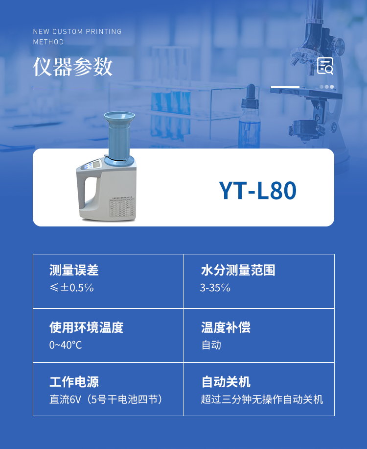 產(chǎn)品介紹: TY-L80型糧食水分測(cè)定儀是老型糧食水分測(cè)定儀的升級(jí)產(chǎn)品、在原來(lái)的基礎(chǔ)上增加了自動(dòng)累加測(cè)量次數(shù),計(jì)算平均值功能和容量自動(dòng)換算顯示功能,其性能更穩(wěn)定可靠,擁有外觀設(shè)計(jì)國(guó)家專利,外形新穎美觀,完**與國(guó)外同類產(chǎn)品媲美,是水分測(cè)量?jī)x器理想的升級(jí)換代產(chǎn)品。 容重?fù)Q算:獨(dú)特的專