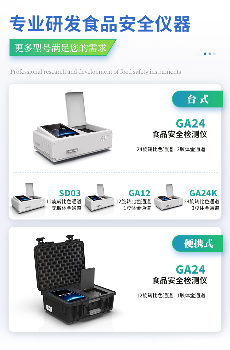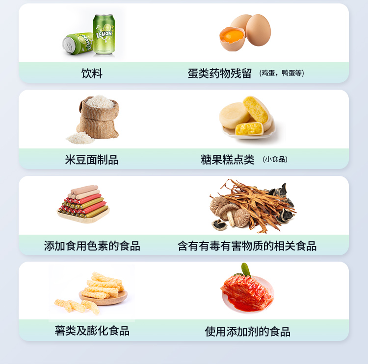 | 功能構(gòu)成:主要包括分光光度模塊、新型農(nóng)殘檢測(cè)模塊、膠體金檢測(cè)模塊、熒光檢測(cè)模塊、數(shù)字化管理模塊等,所有模塊集成一體,可快速檢測(cè)200多種食品安全項(xiàng)目,如獸藥殘留、農(nóng)藥殘留、非法添加劑、細(xì)菌數(shù)值等指標(biāo)。 | 檢測(cè)樣品種類:餐具及廚房用品、瓜果蔬菜及其制品、水產(chǎn)品及其制品、畜禽產(chǎn)品及其制品、嬰幼兒乳品及奶粉制品、蜂蜜、糧油及其制品、調(diào)味品(食醋、醬油、味精、鹽等)、酒類茶葉及其制品、食用菌、飲料、蛋類藥物殘留(雞蛋,鴨蛋等)、米豆面制品、糖果糕點(diǎn)類(小食品)、薯類及膨化食品、瓶(桶)裝飲用水、添加食用色素的食品、使用添加劑的食品、含有有毒有害物質(zhì)的相關(guān)食品。 | 顯示屏幕:儀器采用15.6英寸液晶觸摸屏顯,搭配運(yùn)行安卓智能操作系統(tǒng),主控芯片采用ARM Cortex-A7,RK3288/4核處理器,主頻1.88Ghz,操作方便,性能更強(qiáng)。 | 供電模式:儀器交直流兩用,直流12V供電,可連接車載電源,配18ah大容量充電鋰電池,電量可實(shí)時(shí)顯示,無(wú)外部電源條件下可持續(xù)工作至少 4 小時(shí)。 | 檢測(cè)通道:≥24通道;采用精密旋轉(zhuǎn)比色池設(shè)計(jì),使用同芯片同光源校準(zhǔn)精度,解決不同光源之間的誤差值,更加準(zhǔn)確**,采用高精度進(jìn)口四波長(zhǎng)冷光源,每個(gè)通道均配置 410、520、590、630nm 波長(zhǎng)光源,標(biāo)配**的光路切換裝置,專利光路切換功能可實(shí)現(xiàn)64波長(zhǎng),并且所有檢測(cè)項(xiàng)目可實(shí)現(xiàn)所有通道同時(shí)檢測(cè). | 通訊接口:配備無(wú)線通信模塊、4G(APN)通訊模塊、藍(lán)牙傳輸,同時(shí)具有雙USB接口以及RJ45網(wǎng)線接口,可以多方式實(shí)現(xiàn)數(shù)據(jù)保存及數(shù)據(jù)傳輸。 | 存儲(chǔ)方式:支持U盤(pán)存儲(chǔ),兩個(gè)標(biāo)準(zhǔn)USB接口,免驅(qū)動(dòng)安裝。檢測(cè)結(jié)果存儲(chǔ)容量20萬(wàn)條以上,可生成Excel表格進(jìn)行拷貝,并具有登錄保護(hù)功能。 | 操作系統(tǒng):儀器可在同一檢測(cè)界面自動(dòng)對(duì)應(yīng)相關(guān)檢測(cè)通道,一次性選擇不少于11個(gè)樣品名稱,無(wú)需退出界面,節(jié)省操作時(shí)間。并可以對(duì)每個(gè)通道屬性和樣品信息單獨(dú)進(jìn)行編輯,例如送檢單位、人員,檢測(cè)人員等,打印時(shí)勾選打印顯示。 | 數(shù)據(jù)集成系統(tǒng):設(shè)備首頁(yè)自動(dòng)匯總分析檢測(cè)數(shù)據(jù),包含:周檢測(cè)數(shù)據(jù)、月檢測(cè)數(shù)據(jù),全部檢測(cè)總數(shù)量,包含檢測(cè)總數(shù),合格數(shù),不合格數(shù),以及相關(guān)柱形分析圖,各項(xiàng)檢測(cè)數(shù)據(jù)一目了然,無(wú)需電腦查詢,更加快捷直觀。 | 數(shù)據(jù)庫(kù)系統(tǒng):十幾項(xiàng)數(shù)據(jù)庫(kù)分類管理儀器:包含項(xiàng)目類型、項(xiàng)目數(shù)據(jù)、檢測(cè)數(shù)據(jù)、歷史記錄、國(guó)標(biāo)信息、曲線信息、采樣信息、檢測(cè)信息、受檢信息、復(fù)核信息、圖表信息、光源校準(zhǔn)信息、打印樣式信息、樣品庫(kù)信息等等,數(shù)據(jù)庫(kù)之間互相協(xié)調(diào)聯(lián)動(dòng)保證數(shù)據(jù)的真實(shí)完整性。同時(shí)產(chǎn)品數(shù)據(jù)庫(kù)以及歷史檢測(cè)記錄支持一鍵檢索功能。 | 限量規(guī)判系統(tǒng):具有限量查詢、添加物質(zhì)合規(guī)判定系統(tǒng)。檢測(cè)出結(jié)果后,系統(tǒng)自動(dòng)調(diào)用系統(tǒng)數(shù)據(jù)庫(kù)中相關(guān)國(guó)標(biāo)進(jìn)行比對(duì)判定,客觀顯示判定結(jié)果是否合格。 | 項(xiàng)目預(yù)設(shè)系統(tǒng):儀器具有任務(wù)預(yù)設(shè)模塊,一鍵提前預(yù)設(shè),給出方便快捷的新檢測(cè)方案,每一個(gè)任務(wù)分別可以設(shè)置不同的樣品、批次、編號(hào)、來(lái)源、備注、抽樣信息、檢測(cè)信息、受檢信息、復(fù)核信息等更多信息。樣品送檢時(shí)一鍵調(diào)取保存信息,并可多次調(diào)取,適用于大批量檢測(cè)業(yè)務(wù),可以大大提高檢測(cè)效率。 | 數(shù)據(jù)監(jiān)管系統(tǒng):同步對(duì)接監(jiān)管平臺(tái),數(shù)據(jù)可局域網(wǎng)和互聯(lián)網(wǎng)數(shù)據(jù)上傳,檢測(cè)結(jié)果可直接傳至食品安全監(jiān)管平臺(tái)。進(jìn)行區(qū)域食品安全監(jiān)管及大數(shù)據(jù)分析處理與數(shù)據(jù)統(tǒng)計(jì),監(jiān)測(cè)區(qū)域食品安全長(zhǎng)短期動(dòng)態(tài)及問(wèn)題預(yù)估、預(yù)警 | 全新打印系統(tǒng):內(nèi)置全新打印機(jī),新創(chuàng)自定義打印方式,可按需靈活勾選控制:產(chǎn)品合格證(國(guó)家農(nóng)業(yè)部標(biāo)準(zhǔn)要求),二維碼,抽樣信息、檢測(cè)信息,受檢信息、復(fù)核信息、抽樣日期、檢測(cè)日期等信息的打印。 | A4紙版本報(bào)告打印功能:設(shè)備擁有兩種結(jié)果展示方式,可以自動(dòng)生成A4打印模板和小票打印模板兩種樣式,可通過(guò)WiFi及網(wǎng)線等方式連接外置打印機(jī)可進(jìn)行打印。 | 膠體金檢測(cè)模塊:采用單通道CMOS成像處理技術(shù)及膠體金免疫層析技術(shù),可讀取膠體金卡數(shù)據(jù),自動(dòng)采集、處理分析,將檢測(cè)結(jié)果顯示,并可根據(jù)參