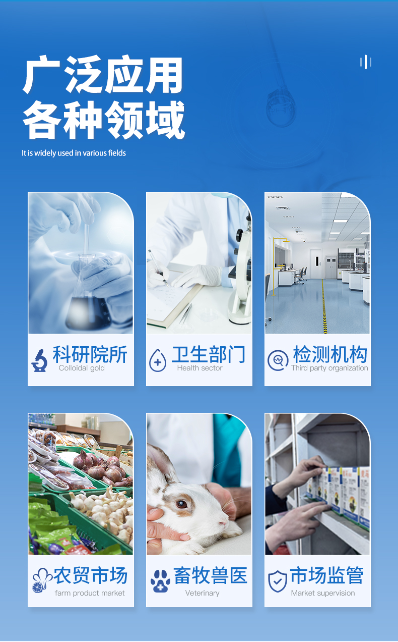 | 儀器采用10.1英寸液晶觸摸屏顯,搭配運(yùn)行安卓智能操作系統(tǒng),主控芯片采用ARM Cortex-A7,RK3288/4核處理器,主頻1.88Ghz,運(yùn)轉(zhuǎn)速度更快速,性能更強(qiáng)。 | 儀器功能包括:膠體金檢測(cè)模塊、數(shù)字化管理模塊、無線通訊模塊等,可以滿足同一軟件下實(shí)現(xiàn)所有檢測(cè)項(xiàng)目的檢測(cè),并在同一窗口展示檢測(cè)結(jié)果。 | 一體化便攜式快檢設(shè)備,采用交直流兩用供電方式,可連接車載電源,配備6ah大容量充電鋰電池,可以滿足現(xiàn)場(chǎng)及流動(dòng)檢測(cè)使用的需求。儀器尺寸:43×35×20cm, 主機(jī)凈重:5.1kg | 系統(tǒng)自帶數(shù)據(jù)集成模塊,設(shè)備首頁(yè)自動(dòng)統(tǒng)計(jì)檢測(cè)數(shù)據(jù)包含:周檢測(cè)數(shù)據(jù)、月檢測(cè)數(shù)據(jù),全部檢測(cè)總數(shù)量,均包含檢測(cè)總數(shù),合格數(shù),不合格數(shù),以及相關(guān)柱形分析圖,對(duì)各項(xiàng)檢測(cè)數(shù)據(jù)清晰掌握,無需電腦查詢,更加快捷直觀。 | 儀器具有任務(wù)預(yù)設(shè)模塊,可在樣品送檢前提前預(yù)設(shè)樣品名稱、檢測(cè)指標(biāo)、送檢單位等信息,樣品送檢時(shí)一鍵調(diào)取保存信息,檢測(cè)更加方便快捷。 | 膠體金檢測(cè)模塊:軌道式自動(dòng)傳輸掃描方式,可實(shí)時(shí)顯示金標(biāo)卡實(shí)時(shí)圖像,系統(tǒng)自動(dòng)分析并呈現(xiàn)出CT曲線圖,CT線自動(dòng)識(shí)別,無需手動(dòng)調(diào)整,完成檢測(cè)后自動(dòng)退出檢測(cè)卡。 結(jié)果判定線可修改,對(duì)照值標(biāo)定值可保存,斷電不丟失數(shù)據(jù)。 兼容市場(chǎng)上其他膠體金卡,使用耗材不受限制,極大增強(qiáng)用戶使用體驗(yàn)。 | 儀器檢測(cè)系統(tǒng)擁有龐大數(shù)據(jù)庫(kù),并且構(gòu)建了完善的檢索、修訂功能。食品庫(kù)涵蓋多種樣品名稱,可按需添加或刪除、編輯樣品名稱;產(chǎn)品數(shù)據(jù)庫(kù)以及歷史檢測(cè)記錄支持一鍵檢索功能。 | 系統(tǒng)打印自定義化,打印格式多樣化,產(chǎn)品合格證(國(guó)家標(biāo)準(zhǔn)要求),二維碼,抽樣信息、檢測(cè)信息,受檢信息、復(fù)核信息、抽樣日期、檢測(cè)日期等信息結(jié)果,可按需求自行設(shè)置打印內(nèi)容。 | A4紙版本報(bào)告打印功能(可選配):設(shè)備擁有兩種結(jié)果展示方式,可以自動(dòng)生成A4打印模板和小票打印模板兩種樣式,可通過WiFi及網(wǎng)線等方式鏈接外置打印機(jī)可進(jìn)行打印 | 儀器具有 wifi 聯(lián)網(wǎng)上傳、RJ45網(wǎng)線連接功能,可以快速上傳數(shù)據(jù)。同步對(duì)接監(jiān)管平臺(tái),數(shù)據(jù)可局域網(wǎng)和互聯(lián)網(wǎng)數(shù)據(jù)上傳,檢測(cè)結(jié)果直接傳至食品安全監(jiān)管平臺(tái)。進(jìn)行區(qū)域食品安全監(jiān)管及大數(shù)據(jù)分析處理與數(shù)據(jù)統(tǒng)計(jì),檢測(cè)區(qū)域食品安全長(zhǎng)短期動(dòng)態(tài),達(dá)到食品安全問題預(yù)估、預(yù)警。 | 設(shè)備支持U盤存儲(chǔ),標(biāo)準(zhǔn)USB接口,免驅(qū)動(dòng)安裝。檢測(cè)結(jié)果存儲(chǔ)容量20萬條以上,可生成Excel表格,進(jìn)行一鍵拷貝,并具有登錄保護(hù)功能,可設(shè)置用戶名及密碼,規(guī)范不同人員操作權(quán)限,防止非工作人員操作,并且可以進(jìn)行重新校準(zhǔn)、鎖定、恢復(fù)出廠設(shè)置功能。儀器固件可升級(jí),后期檢測(cè)項(xiàng)目可擴(kuò)充。 | 儀器具備遠(yuǎn)程升級(jí)功能,可定向分客戶分儀器更新,開機(jī)后自動(dòng)更新,并可持續(xù)性免費(fèi)更新系統(tǒng)版本,無需像傳統(tǒng)產(chǎn)品返廠更新,節(jié)省時(shí)間及人力成本并避免了物流運(yùn)輸返廠升級(jí)導(dǎo)致設(shè)備損壞的潛在風(fēng)險(xiǎn)。 |