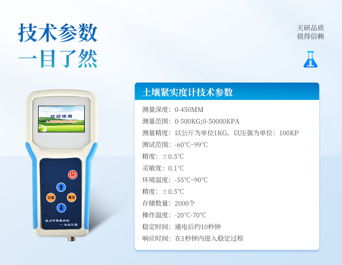 | *測量深度:0-450mm .測量范圍:0-500kg;0-50000kpa | *緊實度參數(shù):測量精度:以公斤為單位1Kg,以壓強為單位:100Kp; | *溫度參數(shù):測試范圍:-60℃~99℃,精度:±0.5℃;靈敏度:0.1℃ | *環(huán)境溫度:-55℃~90℃ 精度:±0.5℃。 | *存儲數(shù)量:2000個 | *操作溫度:-20℃-70℃ | *穩(wěn)定時間:通電后約10秒鐘; .響應時間:在1秒鐘內(nèi)進入穩(wěn)定過程; |