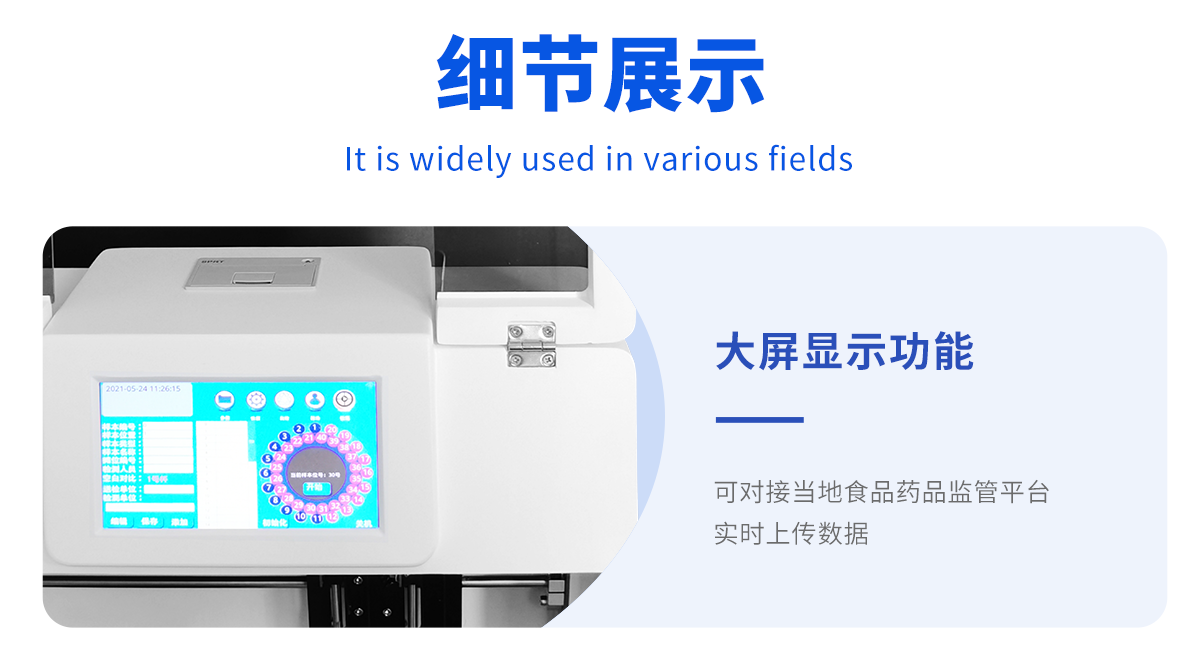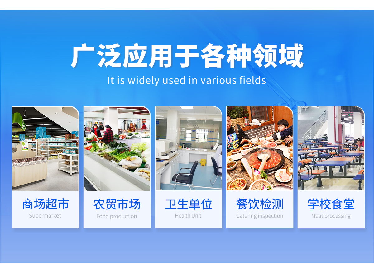 廣泛應用于主要用于蔬菜、水果、茶葉、糧食、農(nóng)副產(chǎn)品等食品中有機磷和氨基甲酸酯類農(nóng)藥殘留的快速檢測;此外還可用于果蔬茶生產(chǎn)基地和農(nóng)貿(mào)批發(fā)銷售市場現(xiàn)場檢測,餐館、學校、食堂、家庭果蔬加工前的安全速測等,為廣大人民的生活安全提供保障。