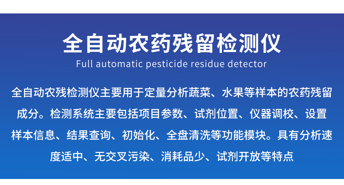 天研全自動農(nóng)藥殘留檢測儀TY-NY2000,檢測標準:依據(jù)國家標準方法(GB/T5009.199-2003)以及世界衛(wèi)生組織WHO、世界糧農(nóng)組織FAO殘留農(nóng)藥檢測標準、世界環(huán)境保護局EPA參照攝入量等要求來設(shè)計。采用酶抑制率比色法對水果、蔬菜等農(nóng)林產(chǎn)品中有機磷和氨基甲酸酯類農(nóng)藥含量進行快速準確的檢測。