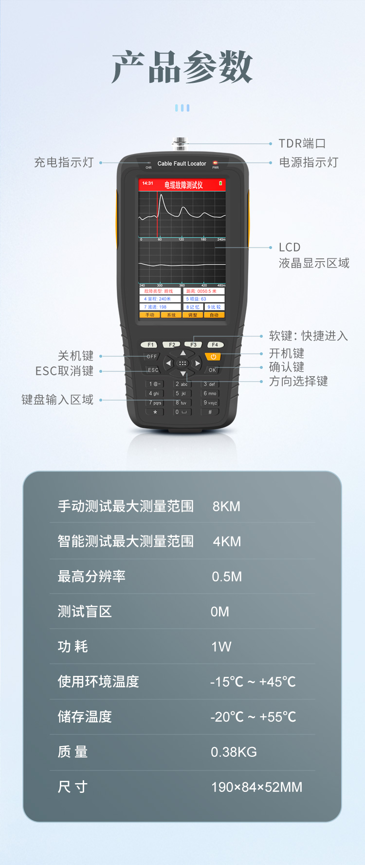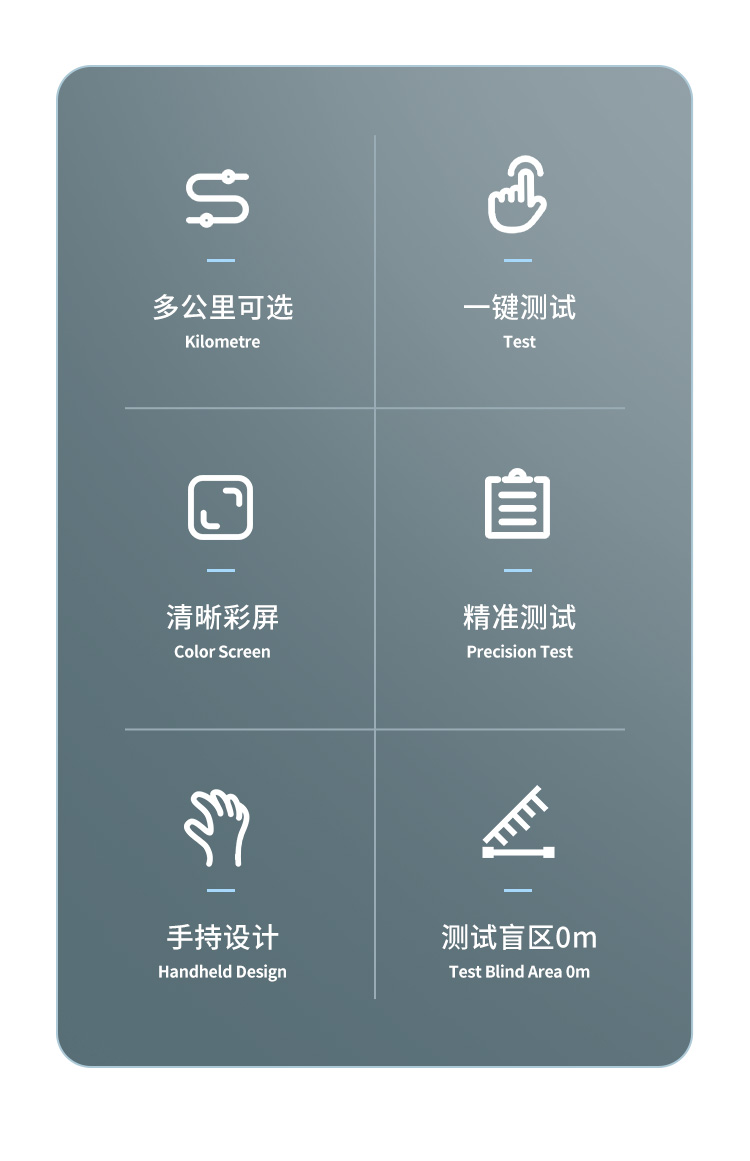 | 手動(dòng)測(cè)試最大測(cè)量范圍 8Km | 智能測(cè)試最大測(cè)量范圍 4Km | **分辨率 0.5m | 測(cè)試盲區(qū) 0m | 功耗 1W | 質(zhì)量 0.38KG | 體積 190×84×52mm3 | 使用環(huán)境溫度 -15℃ ~ +45℃ | 儲(chǔ)存溫度 -20℃ ~ +55℃ |