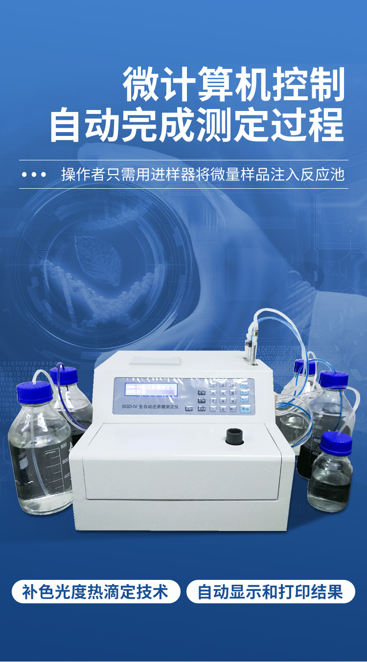 為適應我國食品、醫(yī)藥發(fā)酵行業(yè)生產(chǎn)控制技術和過程分析中還原糖的快速檢測需求,在總結III型儀器應用基礎上,研制出了全新全自動還原糖測定儀。該儀器采用補色光度熱滴定技術,滴定的各種條件由微計算機控制,操作者只需用進樣器將微量樣品注入反應池就可自動完成測定過程,并自動顯示和打印結果,操作更簡單,使用更方便,抗干擾能力更強,測定周期更短,準確度更高。