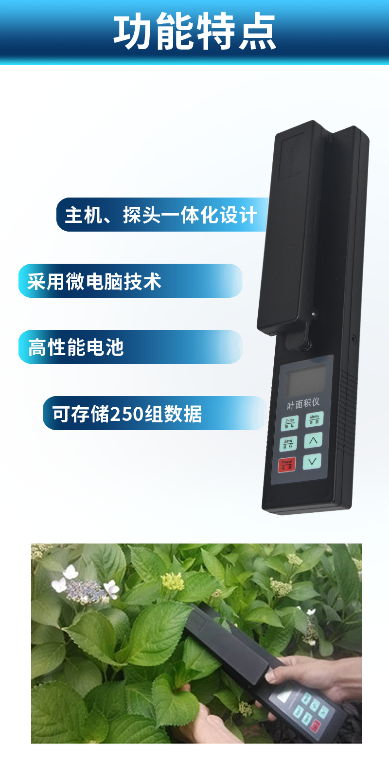 | 1)主機、探頭一體化設(shè)計,更方便操作。 | 2)采用微電腦技術(shù),LCD大液晶顯示。 | 3)高性能電池,無需外部供電,低電壓顯示,更適用于野外測量。 | 4)一次性可測量較大葉片面積(1000*155mm2) | 5)可存儲250組數(shù)據(jù)(葉面積、葉長、葉寬)。 | 6)可測量葉片的多種參數(shù):葉面積、平均葉面積、葉長、葉寬。 | 7)通訊接口:RSR232接口,可將數(shù)據(jù)導(dǎo)入計算機。(此功能只限B和G型) | 8)GPS定位:集成高速GPS定位模塊,上傳數(shù)據(jù)都自帶時間、經(jīng)緯度信息,方便更有效的 |