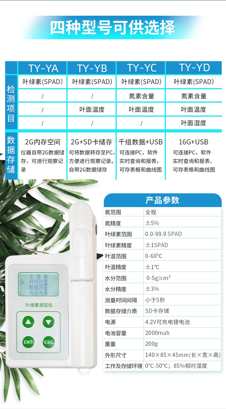 TY-YA植物葉綠素儀可以即時測量植物的葉綠素相對含量(單位SPAD)或“綠色程度”從而可以了解植物真實的硝基需求量并且?guī)椭私馔寥老趸娜狈Τ潭然蚴欠襁^多地施加了氮肥。您可以通過這種儀器來增加氮肥的利用率,并可保護(hù)環(huán)境(防止施加過多的氮肥而使環(huán)境特別是水源受到污染)。