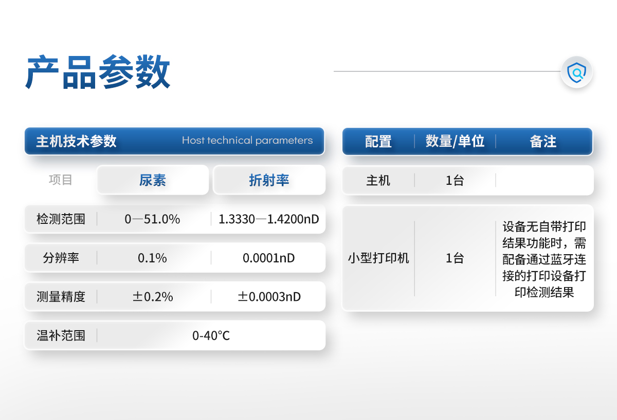 | 檢測范圍:尿素0―51.0%;折射率1.3330―1.4200nD | 分辨率:尿素0.1%;折射率0.0001nD | 測量精度:尿素±0.2%;±0.0003nD | 溫補(bǔ)范圍:0-40℃ |