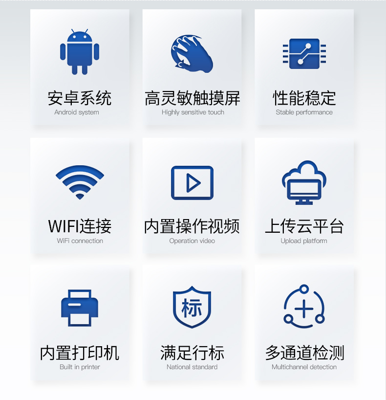 | ★1、Android安卓智能操作系統(tǒng),主控芯片采用ARM Cortex-A7,RK3288/4核處理器,主頻1.88Ghz,運(yùn)轉(zhuǎn)速度更快速,穩(wěn)定性更強(qiáng)。 | ★2、12個(gè)檢測(cè)通道,一次性可快速檢測(cè)12個(gè)樣品,極大提升檢測(cè)效率,降低檢測(cè)成本。 | ★3、采用高精度濾光片技術(shù)自主專(zhuān)利分析方法(專(zhuān)利號(hào):ZL 2020 2 1763837.9),**認(rèn)證。 | ★4、檢測(cè)過(guò)程中內(nèi)置校準(zhǔn)功能,智能恒流穩(wěn)壓,光強(qiáng)自動(dòng)校準(zhǔn),確保檢測(cè)準(zhǔn)確度,取得中國(guó)計(jì)量科學(xué)研究院的《校準(zhǔn)證書(shū)》。 | ★5、儀器標(biāo)配wifi無(wú)線(xiàn)上傳、4G聯(lián)網(wǎng)傳輸、GPRS無(wú)線(xiàn)遠(yuǎn)傳,快速上傳數(shù)據(jù)。 | ★6、配有智慧云農(nóng)業(yè)平臺(tái),儀器連入無(wú)線(xiàn)網(wǎng)絡(luò)后,可將檢測(cè)數(shù)據(jù)可選擇性或批量無(wú)線(xiàn)上傳,方便用戶(hù)進(jìn)行長(zhǎng)期數(shù)據(jù)管理和可視化分析。 | 7、儀器配同時(shí)具有USB接口、以太網(wǎng)接口,內(nèi)置大容量?jī)?nèi)存,并可隨時(shí)用U盤(pán)拷貝數(shù)據(jù)。 | ★8、可用手機(jī)隨時(shí)登錄云平臺(tái)在線(xiàn)移動(dòng)查看歷史數(shù)據(jù) | ★9、內(nèi)置作物專(zhuān)家施肥系統(tǒng),可對(duì)百余種全國(guó)農(nóng)業(yè)經(jīng)濟(jì)作物、果樹(shù)等的目標(biāo)產(chǎn)量計(jì)算推薦施肥量,依據(jù)施肥配方科學(xué)指導(dǎo)農(nóng)業(yè)生產(chǎn)。測(cè)土配方施肥結(jié)果可打印,打印內(nèi)容包含:作物種類(lèi)、肥料種類(lèi)、目標(biāo)產(chǎn)量、需求總量、建議施肥方案。 | 10、內(nèi)置植物營(yíng)養(yǎng)診斷標(biāo)準(zhǔn)圖譜,根據(jù)各農(nóng)作物營(yíng)養(yǎng)缺失的圖片,進(jìn)行葉面對(duì)比,診斷豐缺。 | ★11、4波長(zhǎng)專(zhuān)業(yè)測(cè)試?yán)涔庠矗t、藍(lán)、綠、橙),光源波長(zhǎng)穩(wěn)定,長(zhǎng)時(shí)間連續(xù)工作光源無(wú)溫漂現(xiàn)象,壽命長(zhǎng)達(dá)10萬(wàn)小時(shí)級(jí)別,重現(xiàn)性好,準(zhǔn)確度高。 | 12、比色池部分采用標(biāo)準(zhǔn)1cm比色皿,無(wú)機(jī)械位移及磨損,光路測(cè)試定位**,有效屏蔽外光干擾,保證檢測(cè)結(jié)果優(yōu)于國(guó)標(biāo)要求。 | ★13、儀器系統(tǒng)內(nèi)帶有樣品前處理操作視頻,各種樣品檢測(cè)方法點(diǎn)擊視頻模塊即可觀(guān)看,檢測(cè)人員無(wú)需自學(xué)說(shuō)明書(shū),指導(dǎo)教學(xué)方便快速,方便新手快速操作。 | 14、內(nèi)置新一代高速熱敏打印機(jī)(無(wú)需色帶),打印內(nèi)容包含:檢測(cè)單位、檢測(cè)人員、檢測(cè)項(xiàng)目、通道號(hào)、吸光度、養(yǎng)分含量(mg/kg)、檢測(cè)時(shí)間、以及二維碼等信息 | ★15、高靈敏7寸真彩觸摸屏,采用更加**和人性化操作,高清晰高交互顯示,大程度降低傳統(tǒng)儀器的繁瑣操作和失誤,并取得多項(xiàng)《軟件著作權(quán)》。 | 16、內(nèi)置時(shí)鐘功能,方便操作時(shí)間記錄,長(zhǎng)期歷史追溯。 | 17、可設(shè)置多賬戶(hù)賬號(hào)密碼登錄,**UI交互界面,不同的用戶(hù)可自由添加編輯檢測(cè)信息,保存后可長(zhǎng)期使用。 | 18、GPS功能:可在野外作業(yè)時(shí)記錄經(jīng)緯度地點(diǎn),滿(mǎn)足特殊用戶(hù)需求。 | 19、內(nèi)置低電壓提示功能,可在檢測(cè)時(shí)明確電量,避免測(cè)試數(shù)據(jù)偏移,同時(shí)具有斷電保護(hù)功能,斷電自動(dòng)保存數(shù)據(jù),防止數(shù)據(jù)丟失。 | 20、交直流兩用供電方式,內(nèi)置大容量充電鋰電池,滿(mǎn)電狀態(tài)下可連續(xù)工作10余小時(shí),同時(shí)可外接車(chē)載電源蓄電。 | ★21、儀器具有中英文切換功能,可滿(mǎn)足出口要求。 | 22、高強(qiáng)度PVC工程塑料手提箱設(shè)計(jì),堅(jiān)固耐用,便于攜帶。 |