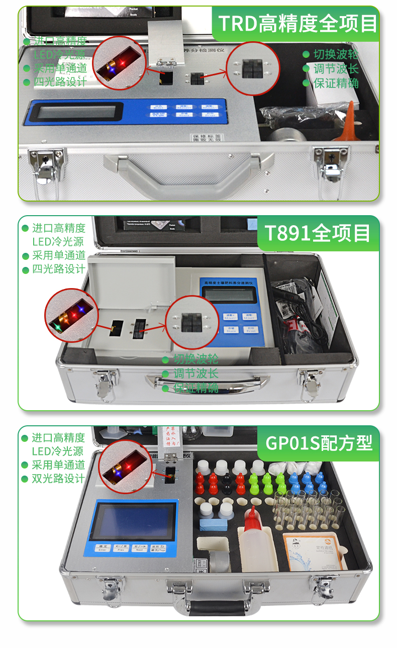 | 配套齊全:土壤養(yǎng)分速測儀該儀器集藥、器、儀為一體,攜帶方便,相當于一個小型實驗室。適于農(nóng)業(yè)服務部門或農(nóng)資經(jīng)銷商、肥料廠商測土施肥和鑒別肥料真假。 | 操作簡便、速度快捷,成品藥劑開瓶即用,無須配置。 | 性能可靠:工作穩(wěn)定性優(yōu)于國家標準JJG179-90指標的6倍,重復性達到光柵型分光光度計指標水平。 |