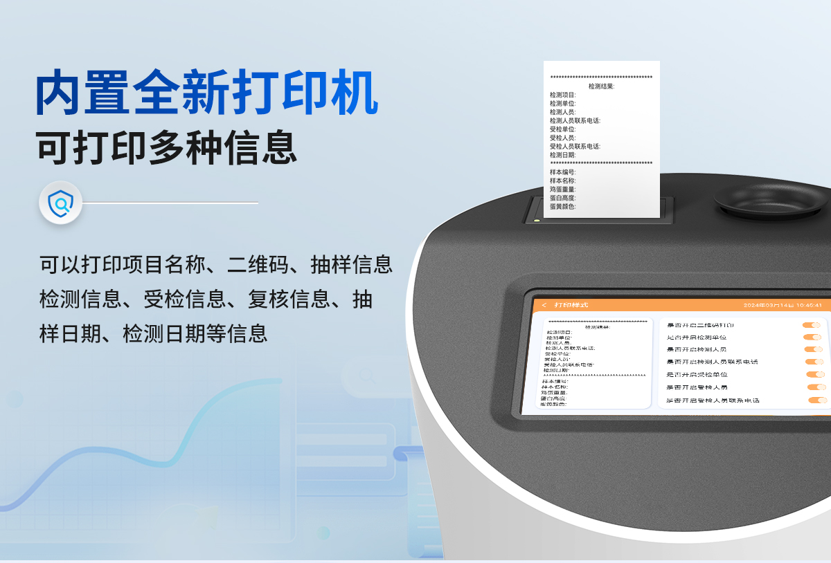 隨著消費者對食品安全問題的日益關注,雞蛋品質檢測成為了保障雞蛋質量、維護消費者健康權益的重要手段。我司生產(chǎn)的雞蛋品質檢測儀可通過專業(yè)的檢測項目和方法,進行雞蛋的品質檢測和分析。