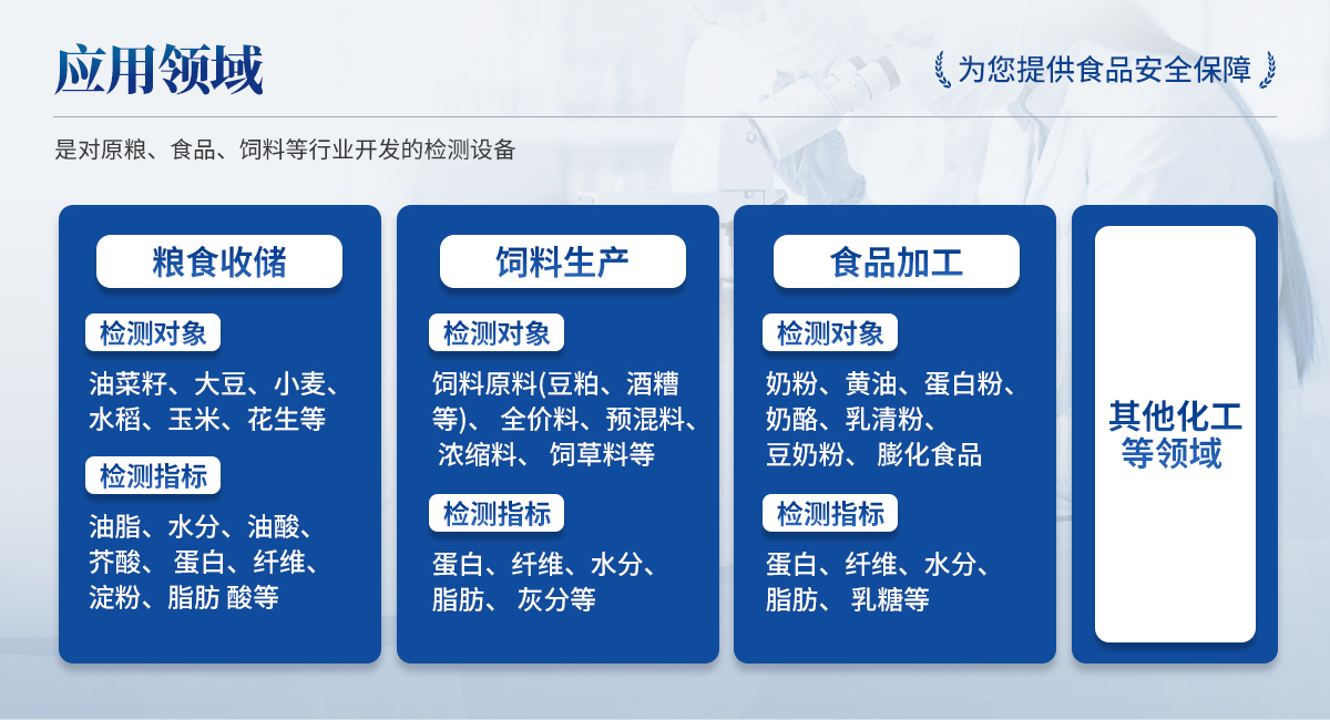 檢測對象:奶粉、黃油、奶酪、乳清粉、豆奶粉、蛋白粉、膨化食品; 檢測指標:蛋白、纖維、水分、脂肪、乳糖等; | ◆ 其他化工等領(lǐng)域 |