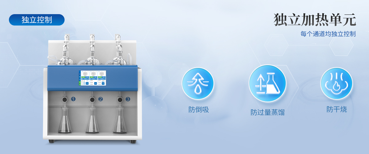 | 1.自動(dòng)化程度高:內(nèi)置冷卻水循環(huán)機(jī),實(shí)現(xiàn)全自動(dòng)化操作,提高實(shí)驗(yàn)效率與準(zhǔn)確性。 | 2.多通道獨(dú)立控制:3個(gè)加熱單元各自獨(dú)立,配備防倒吸、防過(guò)量蒸餾及防干燒保護(hù)。 | 3.智能觸控:7寸液晶觸摸屏,支持自定義保存最多1000種蒸餾方法,內(nèi)置18種國(guó)標(biāo)方法。 | 4.精準(zhǔn)控制:采用**陶瓷遠(yuǎn)紅外加熱,具備時(shí)間與重量雙重終點(diǎn)控制,確保蒸餾精度達(dá)0.1ml。 | 5.安全可靠:集成自動(dòng)清洗、自動(dòng)氣密檢查、反吹等功能,確保設(shè)備長(zhǎng)期穩(wěn)定運(yùn)行。 | 6.操作簡(jiǎn)便:一鍵啟動(dòng),支持遠(yuǎn)程OTA系統(tǒng)升級(jí),滿足不同用戶的使用需求。 |