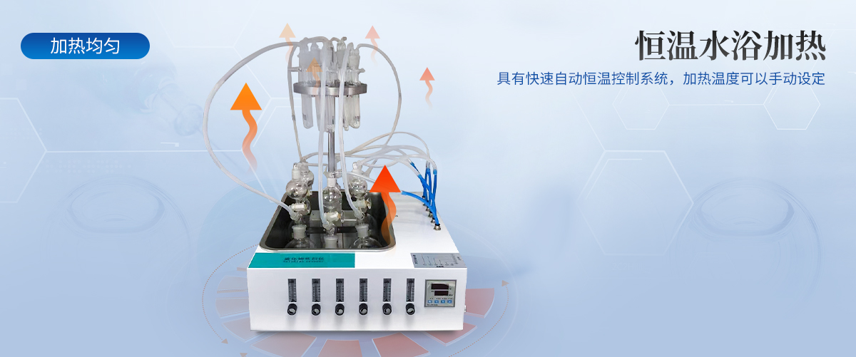 | 1.大容量反應(yīng)瓶,可同時處理多個樣品。 | 2.鹽酸口、氣體進口、出口三口一體且相互獨立,操作會不干擾。 | 3.恒溫水浴加熱,具有快速自動恒溫控制系統(tǒng),加熱溫度可以手動設(shè)定。 | 4.由升降位置固定旋鈕調(diào)節(jié)樣品架及配氣系統(tǒng)的升降旋轉(zhuǎn)樣品架,正面安裝樣品,操作方便。 | 5.每個樣品的氮氣流量獨立控制調(diào)節(jié)或關(guān)閉,針閥氣體流量計準(zhǔn)確控制和顯示氣體總消耗量。 | 6.操作簡便:一鍵啟動,支持遠程OTA系統(tǒng)升級,滿足不同用戶的使用需求。 |