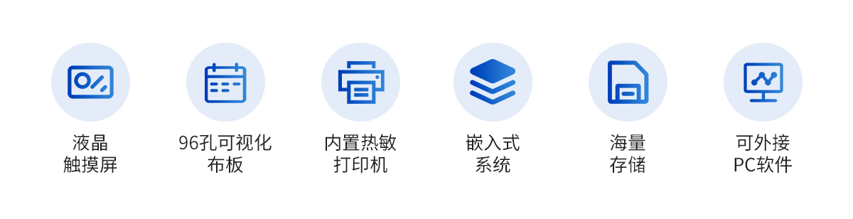 | 1. 內(nèi)置嵌入式系統(tǒng),無(wú)需外接電腦即可操作、存儲(chǔ)、打印。 | 2. 全屏顯示96孔整板數(shù)據(jù), 直觀的可視化布板操作界面。 | 3. 便捷的觸摸屏輸入,另可選配外接鼠標(biāo)和鍵盤。 | 4. 測(cè)量模式:?jiǎn)尾ㄩL(zhǎng)檢測(cè),雙波長(zhǎng)檢測(cè),兩點(diǎn)法,動(dòng)力學(xué)法,酶抑制率,終點(diǎn)法、速率法。 | 5. 可選擇吸光度、Cut-Off定性計(jì)算、單點(diǎn)定標(biāo)、折線回歸、線性回歸、指數(shù)回歸、對(duì)數(shù)回歸、雙對(duì)數(shù)回歸、log-logit、冪回歸、四參數(shù)回歸、酶抑制率等計(jì)算方法。 | 6. 在同一板上可進(jìn)行多至12個(gè)不同項(xiàng)目的測(cè)試,并可同一板檢測(cè)定性和定量項(xiàng)目。 | 7. 全面完善的質(zhì)控功能,包含westguard多規(guī)則質(zhì)控,即刻法質(zhì)控等多種質(zhì)控圖及質(zhì)控參數(shù)計(jì)算,具有質(zhì)控報(bào)警功能。 | 8. 具有靈活的定性公式輸入功能,滿足各種相同及不同試劑的不同的參數(shù)設(shè)置。 | 9. 布板和保存導(dǎo)入功能,大幅提高常用項(xiàng)目的測(cè)試效率。 | 10. 可選配外接PC軟件,網(wǎng)絡(luò)化支持,迎合數(shù)字化發(fā)展方向,可定制上傳。 | 11. 全新風(fēng)格彩色圖形化界面,全中文操作系統(tǒng),支持鼠標(biāo)、鍵盤,支持輸入法。 | 12. 光源智能開(kāi)關(guān),延長(zhǎng)其壽命。 | 13. 提供多種打印方式及多種形式中文報(bào)告,并可定制各式報(bào)告。 | 14. 專用系統(tǒng)維護(hù)菜單,自動(dòng)判斷儀器當(dāng)前狀態(tài)及性能指標(biāo),并可打印相關(guān)數(shù)據(jù) |