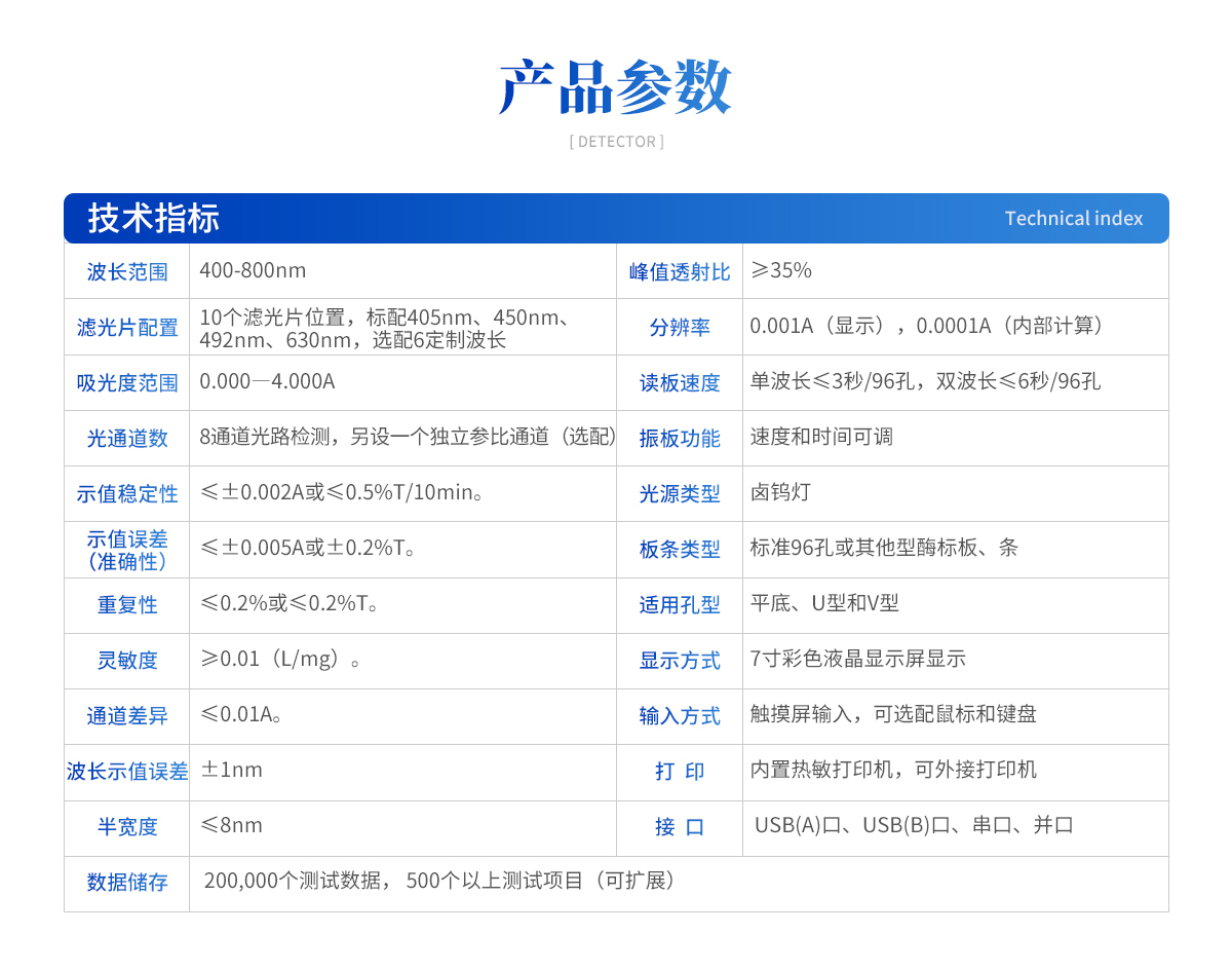 產(chǎn)品特點(diǎn):1. 內(nèi)置嵌入式系統(tǒng),無(wú)需外接電腦即可操作、存儲(chǔ)、打印。2. 全屏顯示96孔整板數(shù)據(jù), 直觀的可視化布板操作界面。3. 便捷的觸摸屏輸入,另可選配外接鼠標(biāo)和鍵盤。4. 測(cè)量模式:?jiǎn)尾ㄩL(zhǎng)檢測(cè),雙波長(zhǎng)檢測(cè),兩點(diǎn)法,動(dòng)力學(xué)法,酶抑制率,終點(diǎn)法、速率法。5. 可選擇吸光度、Cut-Off定性計(jì)算、單點(diǎn)定標(biāo)、折線回歸、線性回