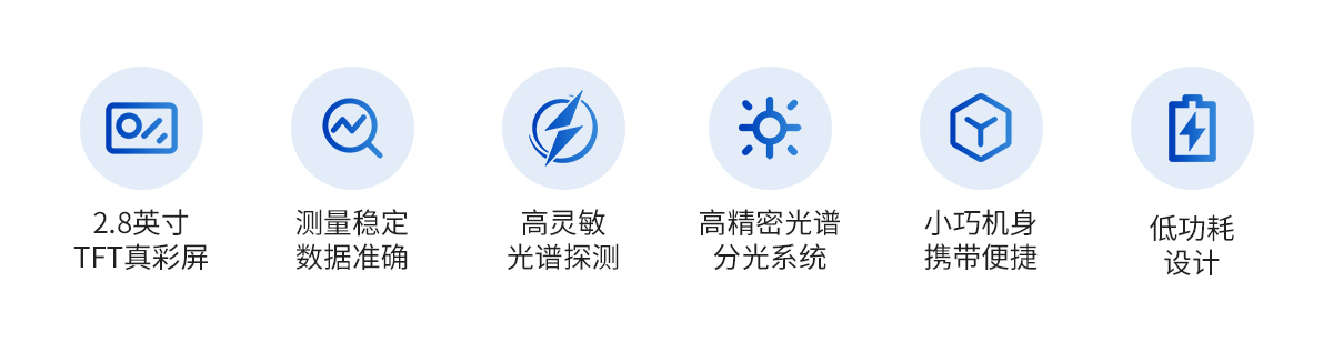 | 1.采用自主創(chuàng)新專利智能監(jiān)控整個(gè)儀器的電子電路系統(tǒng)和光學(xué)系統(tǒng),確保儀器在每次測量時(shí)不受外界環(huán)境,從而達(dá)到高穩(wěn)定性(ΔE小于0.07) | 2.臺間差是指每臺儀器測量數(shù)據(jù)之間的差別。 在產(chǎn)品加工生產(chǎn)時(shí),每臺儀器的品質(zhì)嚴(yán)格把控;在產(chǎn)品出庫時(shí),每臺儀器的品檢嚴(yán)格把關(guān);確保每臺儀器的臺間差達(dá)到更小化,從而為儀器使用者創(chuàng)造一個(gè)可靠的數(shù)據(jù)化客商交流環(huán)境。 | 3.TY-SCL02便攜式分光測色儀具有三種供電方式:3200mAH可充電鋰電池供電;外接5V直流電源供電;鋰電池和外接5V直流電源同時(shí)供電; 鋰電池充電一次后可測量次數(shù)高達(dá)10000 次以上,此儀器設(shè)有過壓保護(hù)系統(tǒng),當(dāng)客戶接錯(cuò)電源時(shí)儀器內(nèi)部的過壓系統(tǒng)就會啟動,從而保護(hù)儀器不會被燒壞。 | 4.采樣高精密的光譜分光系統(tǒng)和穩(wěn)定的光學(xué)系統(tǒng),**的分離不同的波長光波,從而得到精準(zhǔn)的光譜數(shù)據(jù)和Lab值。 | 5.TY-SCL02便攜式分光測色儀具有平均測量功能,平均測量次數(shù)可設(shè)置為1-99次。 | 6.儀器中內(nèi)置六種光源A、C、D50、D65、F2(CWF)和F12(U30)和三種顯色參數(shù)(L*a*b*、L*C*h*和Yxy),可滿足使用者的不同的顏色測量需求。 | 7.人體工學(xué)設(shè)計(jì)的機(jī)身帶給你更舒適的測量體驗(yàn)。 | 8.采用2.8寸TFF彩色顯示屏、圖形化的用戶界面,為您實(shí)現(xiàn)更容易的操作。 | 9.TY-SCL02便攜式分光測色儀可與電腦端上位機(jī)軟件(選配)進(jìn)行通訊連接,利用電腦端軟件對儀器的功能進(jìn)行拓展,可實(shí)現(xiàn)數(shù)據(jù)的分析、上傳、下載、打印以及手動輸入LAB值等功能;也可與微型打印機(jī)(選配)進(jìn)行連接,可以實(shí)現(xiàn)測量數(shù)據(jù)的實(shí)時(shí)打印。 |