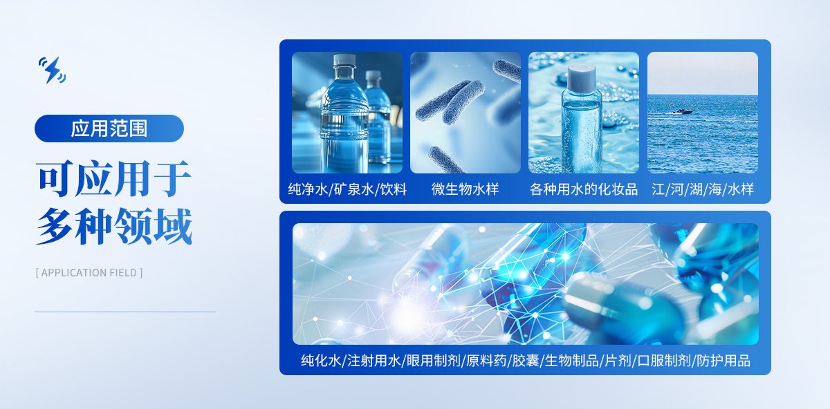 | 1.制藥醫(yī)療:純化水、注射用水、眼用制劑、原料藥、膠囊、生物制品、片劑、口服制劑,防護(hù)用品。 | 2.食品:純凈水、礦泉水、飲料。 | 3.化工:各種需測(cè)試微生物水樣。 | 4.化妝品:各種用水及產(chǎn)品。 | 5.控疾:江、河、湖、海、水樣。 |