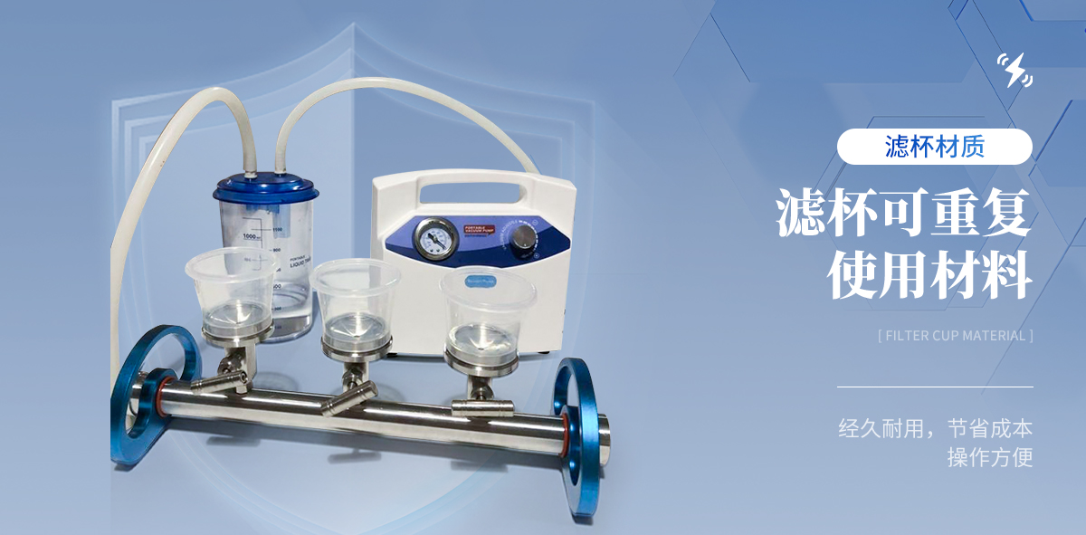 微生物限度檢測(cè)系統(tǒng)采用不銹鋼金屬材料制成,配有真空泵,外接抽濾瓶