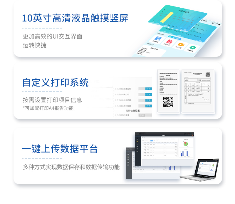 | 儀器采用臺(tái)式一體化系統(tǒng)檢測(cè)技術(shù),新型農(nóng)殘檢測(cè)模塊、數(shù)字化管理模塊、無(wú)線通訊模塊高度集成于一體,同時(shí)預(yù)留升級(jí)檢測(cè)方法。 | 儀器檢測(cè)模塊標(biāo)準(zhǔn)化、智能化,可隨意自由組合。檢測(cè)箱體內(nèi)置多個(gè)標(biāo)準(zhǔn)檢測(cè)單元,檢測(cè)模塊可以調(diào)整配置。 | 儀器采用全新安卓智能系統(tǒng),主控芯片采用 ARM Cortex-A7,RK3288/4核處理器,10.1寸高清液晶觸摸豎屏,更加**的UI交互界面,運(yùn)轉(zhuǎn)快捷;儀器配備無(wú)線通信模塊: 4G(APN)通訊模塊、Wifi模塊,藍(lán)牙傳輸,同時(shí)具有雙USB接口以及RJ45接口能以多種方式實(shí)現(xiàn)數(shù)據(jù)保存和數(shù)據(jù)傳輸功能。 | 創(chuàng)新檢測(cè)模式:檢測(cè)通道:≥24通道;采用精密旋轉(zhuǎn)比色池設(shè)計(jì),使用同芯片同光源校準(zhǔn)精度,解決不同光源之間的誤差值。1-12通道間誤差0.1%。(專利號(hào):ZL202022821055.2) 儀器具有自動(dòng)識(shí)別比色皿檢測(cè)功能,即:將樣品比色皿放入儀器后,點(diǎn)擊樣品檢測(cè),儀器自動(dòng)識(shí)別比色皿進(jìn)行通道檢測(cè)。 | 進(jìn)口高精光源:高精度進(jìn)口四波長(zhǎng)冷光源,通道配置 410、520、590、630nm 波長(zhǎng)光源,一個(gè)光源芯片驅(qū)動(dòng)一個(gè)光源,誤差極小,每臺(tái)設(shè)備單獨(dú)**校準(zhǔn)光源,**比對(duì),同時(shí)參照四種不同波段光源全方位覆蓋市面上99%的農(nóng)殘食品項(xiàng)目檢測(cè),可按照實(shí)際需求進(jìn)行食品項(xiàng)目檢測(cè)升級(jí)。 | 高精光源系統(tǒng): ①儀器光源采用進(jìn)口超高亮發(fā)光二極管,光源亮度可以自動(dòng)調(diào)節(jié)與校準(zhǔn) ②智能恒流穩(wěn)壓,光強(qiáng)自動(dòng)校準(zhǔn),長(zhǎng)時(shí)間連續(xù)工作光源無(wú)溫漂現(xiàn)象。 | 智能操作分析系統(tǒng): | 便捷操作系統(tǒng):設(shè)備檢測(cè)時(shí)可在同一檢測(cè)界面自動(dòng)對(duì)應(yīng)相關(guān)檢測(cè)通道一次性選擇1-24個(gè)樣品名稱,無(wú)須退出界面,節(jié)省操作時(shí)間。 | 數(shù)據(jù)集成系統(tǒng):設(shè)備首頁(yè)自動(dòng)統(tǒng)計(jì)檢測(cè)數(shù)據(jù)包含:周檢測(cè)數(shù)據(jù)、月檢測(cè)數(shù)據(jù),全部檢測(cè)總數(shù)量,均包含檢測(cè)總數(shù),合格數(shù),不合格數(shù),以及相關(guān)柱形分析圖,對(duì)各項(xiàng)檢測(cè)數(shù)據(jù)清晰掌握,無(wú)需電腦查詢,更加快捷直觀。 | 項(xiàng)目預(yù)設(shè)系統(tǒng):支持添加單個(gè)及多個(gè)相同或不相同的任務(wù)預(yù)設(shè),一鍵快速調(diào)取,每一個(gè)任務(wù)分別可以設(shè)置不同的樣品、批次、編號(hào)、來(lái)源、備注、抽樣信息、檢測(cè)信息、受檢信息、復(fù)核信息等更多信息。 | 數(shù)據(jù)監(jiān)管系統(tǒng):同步對(duì)接監(jiān)管平臺(tái),數(shù)據(jù)可局域網(wǎng)和互聯(lián)網(wǎng)數(shù)據(jù)上傳,檢測(cè)結(jié)果可選擇直接傳至食品安全監(jiān)管平臺(tái)。集成OSS輸出存儲(chǔ)服務(wù)、區(qū)分設(shè)備定向管理應(yīng)用,進(jìn)行區(qū)域食品安全監(jiān)管及大數(shù)據(jù)分析處理與數(shù)據(jù)統(tǒng)計(jì),檢測(cè)區(qū)域食品安全長(zhǎng)短期動(dòng)態(tài),達(dá)到食品安全問題預(yù)估、預(yù)警。 | 自定義打印系統(tǒng):內(nèi)置新創(chuàng)自定義打印系統(tǒng),可按需靈活設(shè)置開啟或關(guān)閉:產(chǎn)品合格證(國(guó)家農(nóng)業(yè)部標(biāo)準(zhǔn)),二維碼,抽樣信息、檢測(cè)信息,受檢信息、復(fù)核信息、抽樣日期、檢測(cè)日期等信息的打印。 | A4版本報(bào)告打印功能:設(shè)備可自動(dòng)生成A4版報(bào)告,外接打印機(jī)即可打印 | 系統(tǒng)遠(yuǎn)程更新功能:可定向分客戶分儀器更新系統(tǒng),按照不同客戶后期實(shí)際需求添加項(xiàng)目,無(wú)需設(shè)備返廠,即可遠(yuǎn)程實(shí)時(shí)升級(jí)全新系統(tǒng),節(jié)省時(shí)間成本及避免運(yùn)輸造成設(shè)備損壞。 | 安全證書,放心保障:儀器具有中國(guó)計(jì)量科學(xué)研究院校準(zhǔn)證書,**認(rèn)證。 |