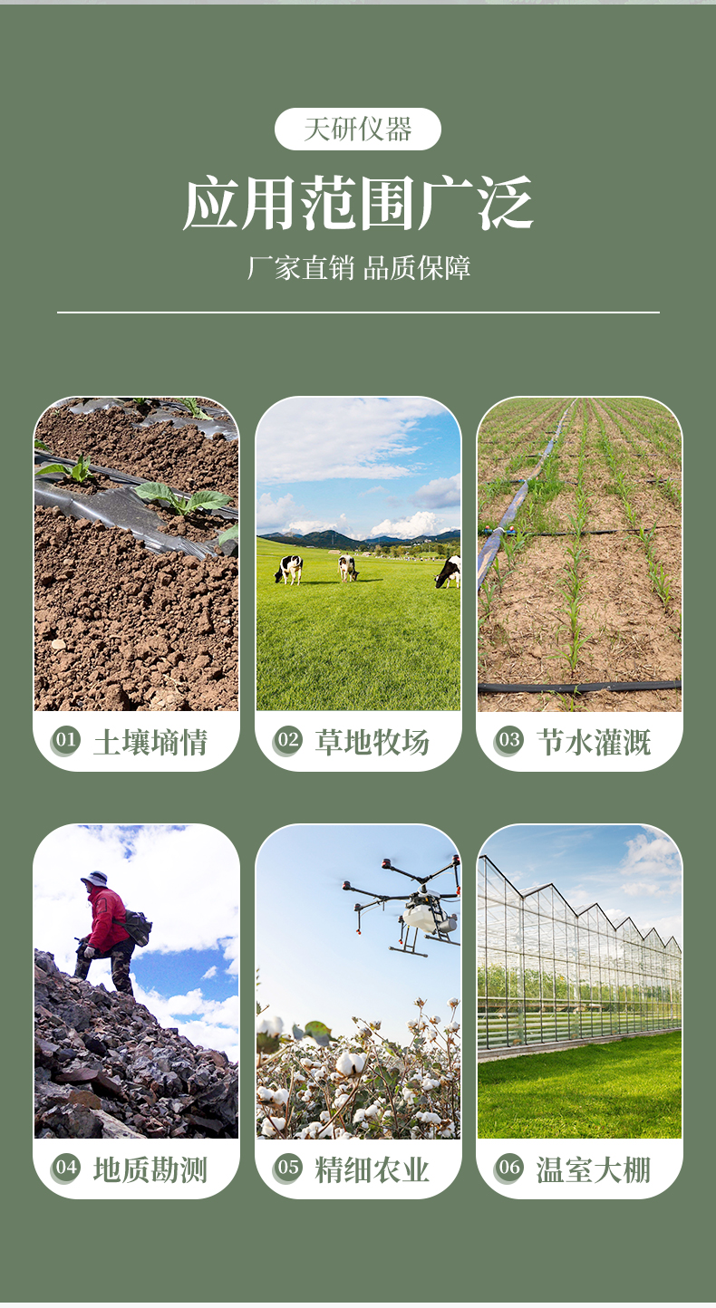 該儀器廣泛應(yīng)用于旱作節(jié)水灌溉、精細(xì)農(nóng)業(yè)、林業(yè)、地質(zhì)勘探、植物培育、溫室大棚種植、水利、環(huán)保、科學(xué)試驗等領(lǐng)域。