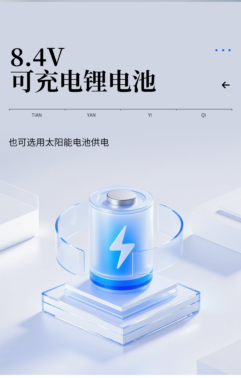 | 顯示:320×160液晶顯示屏 | 電源:8.4V可充電鋰電池(也可選用太陽能電池供電) |