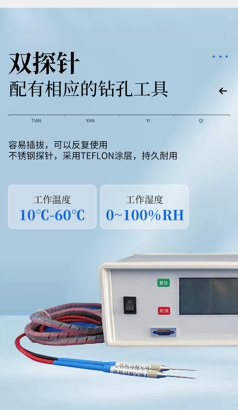 | 雙探針設(shè)計(jì),配有相應(yīng)的鉆孔工具,安裝簡便,可反復(fù)使用 | 采用熱消散法,可恒溫加熱,測量穩(wěn)定可靠 |