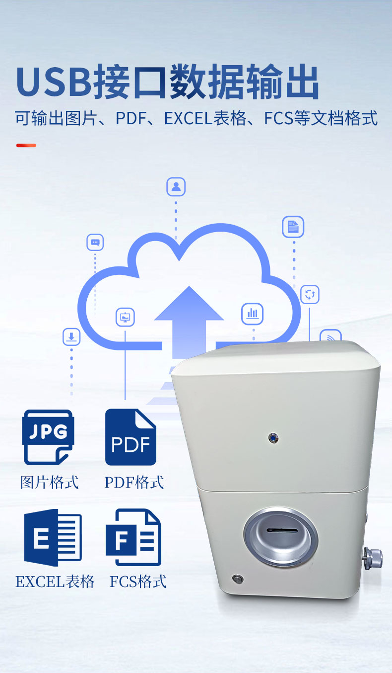 數(shù)據(jù)輸出: 1、USB接口數(shù)據(jù)輸出; 2、可輸出圖片、PDF、Excel表格、FCS等文檔格式; |