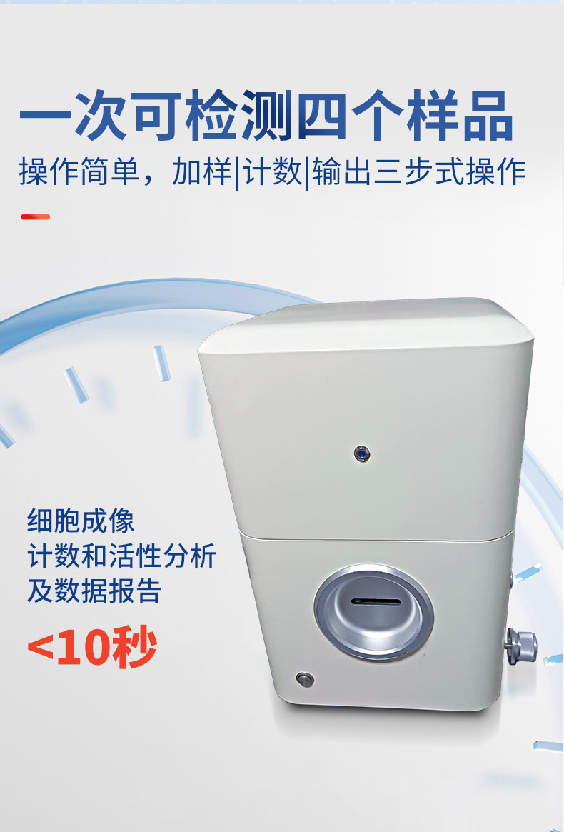 細(xì)胞計數(shù)儀簡述: 細(xì)胞計數(shù)儀通過細(xì)胞成像技術(shù)結(jié)合傳統(tǒng)血球計數(shù)原理,經(jīng)計數(shù)軟件對細(xì)胞分布圖像進(jìn)行自動計數(shù)、細(xì)胞聚團(tuán)率分析、細(xì)胞活力分析、細(xì)胞大小分析,并繪制細(xì)胞大小柱狀圖等。該儀器檢測快速、操作簡單、結(jié)果準(zhǔn)確,可滿足多種細(xì)胞檢測場景需求。 主要特點(diǎn):