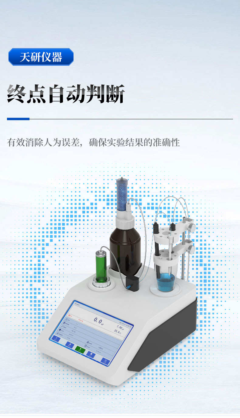 6. 操作簡單,快捷,檢測過程無需人為干預(yù),操作者的健康和環(huán)境得到了最大保障,同時節(jié)省了實驗員用于測試的時間成本,能夠快速完成滴定分析,減少實驗時間,提高實驗效率。