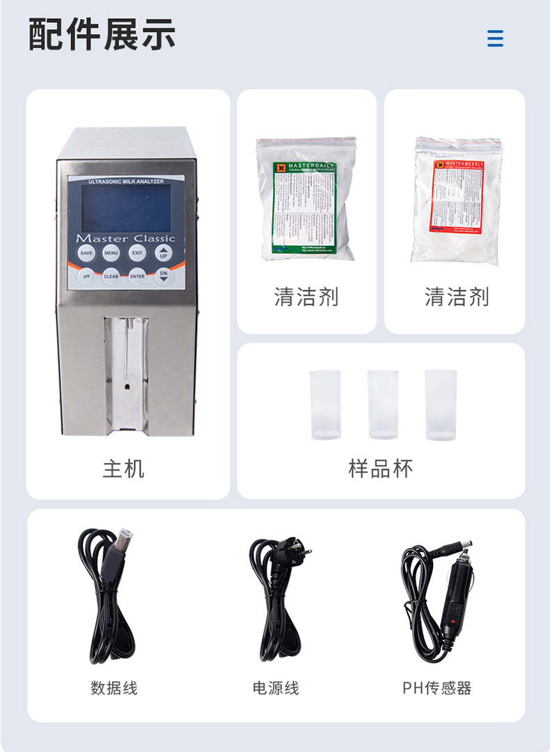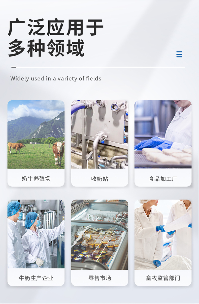 牛奶分析儀可配第二蠕動泵自動清洗。是舒適和可靠的牛奶分析儀與精密的傳感器, 長壽命和更好 的精度。有三個校準(zhǔn)通道可供選擇。牛奶分析儀的標(biāo)準(zhǔn)校準(zhǔn)適用于牛奶,羊奶,UHT。該分析儀還可以校準(zhǔn):水牛奶、 巴氏殺菌奶、 山羊奶、 混合奶、 脫脂奶、乳清等類型的牛奶和牛奶衍生物。