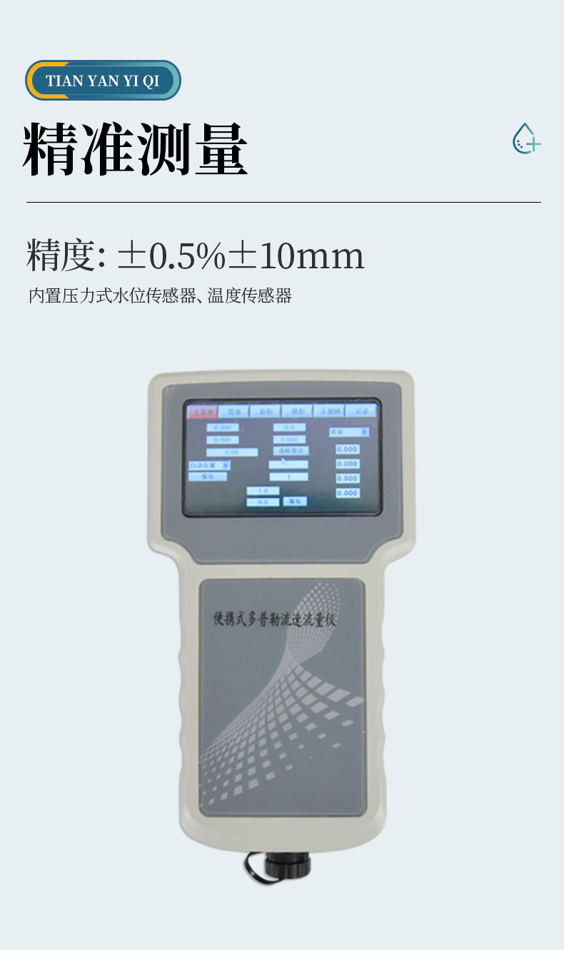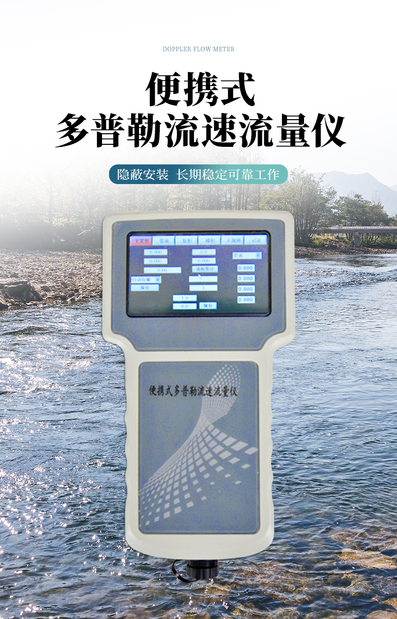 多普勒流速儀原理:當(dāng)超聲波聲源和觀察者做相對(duì)運(yùn)動(dòng)時(shí),觀察者接收到的頻率就會(huì)和超聲波聲源頻率不同。因此,相對(duì)于超聲波換能器的隨水移動(dòng)的小顆粒、小氣泡也會(huì)使換能器接收頻率改變,且隨水中懸浮運(yùn)動(dòng)速度的增加而增加, 由此測(cè)出多普勒頻移,也就測(cè)出了多普勒流速儀所處點(diǎn)水的流速。 主要用于灌溉明渠,市政下水管道,水文流域等場(chǎng)合。特別適合低水位的場(chǎng)合,水位超過 15 厘米就可以工作。在規(guī)則的管道、渠道,通過流速儀上的壓力傳感器測(cè)得水深,超聲傳感器測(cè)得流速,可以方便地計(jì)算出流量。