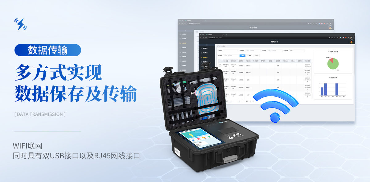 11、儀器具有 wifi 聯(lián)網(wǎng)上傳、RJ45網(wǎng)線連接功能,可以快速上傳數(shù)據(jù)。同步對接監(jiān)管平臺,數(shù)據(jù)可局域網(wǎng)和互聯(lián)網(wǎng)數(shù)據(jù)上傳,檢測結(jié)果直接傳至食品安全監(jiān)管平臺。進(jìn)行區(qū)域食品安全監(jiān)管及大數(shù)據(jù)分析處理與數(shù)據(jù)統(tǒng)計,檢測區(qū)域食品安全長短期動態(tài),達(dá)到食品安全問題預(yù)估、預(yù)警。