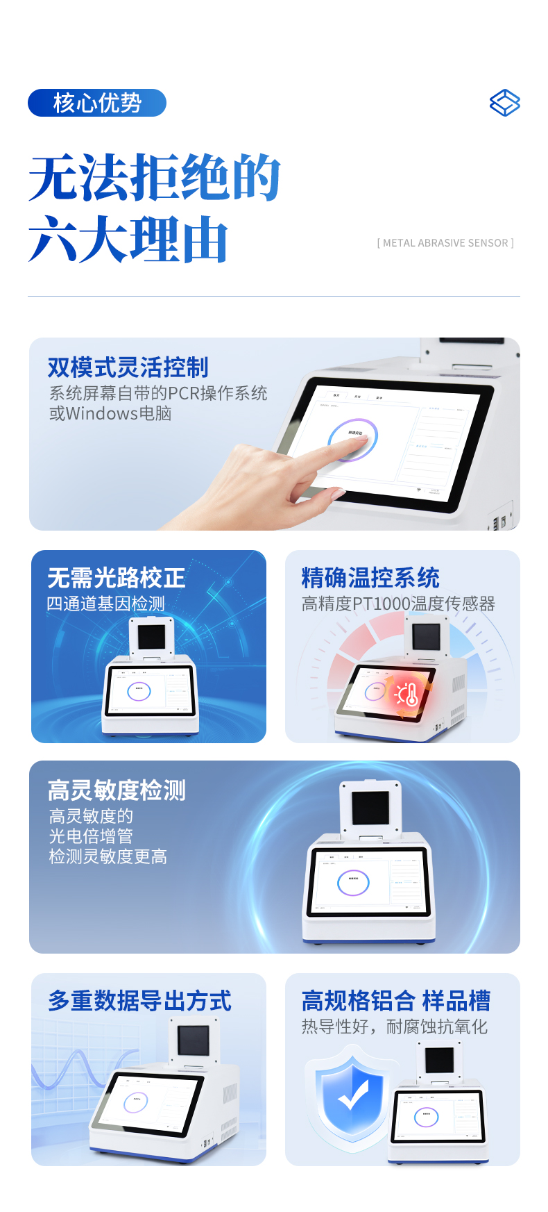 基于實時熒光定量PCR技術(shù),聚焦動物體液、組織樣本中病原體核酸精準(zhǔn)檢測。半導(dǎo)體溫控確保擴(kuò)增穩(wěn)定,多通道并行,支持定性定量,適配實驗室與養(yǎng)殖場現(xiàn)場。操作簡捷,報告自動生成,助力疫病早篩早控,降低養(yǎng)殖風(fēng)險。
