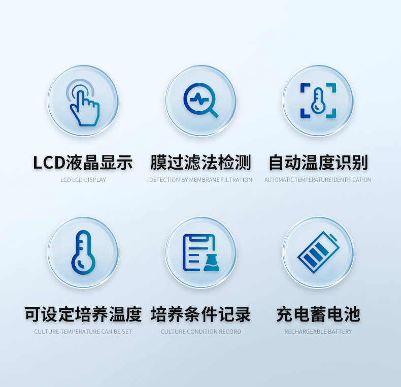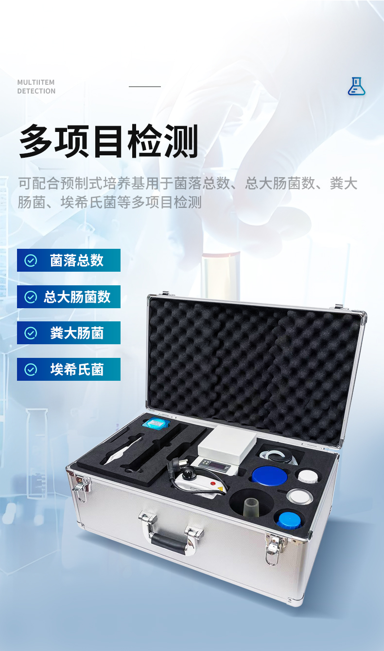 廣泛應(yīng)用于農(nóng)村飲用水、市政自來(lái)水、泳池水、分散式供水、養(yǎng)殖排放水等的細(xì)菌檢測(cè)。儀器采用多功能培養(yǎng)基支架,可配合預(yù)制式培養(yǎng)基用于菌落總數(shù)、總大腸菌數(shù)、糞大腸菌、埃希氏菌等多項(xiàng)目檢測(cè) 。