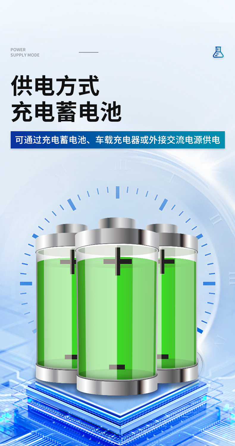 | 供電方式 | 可通過(guò)充電蓄電池、車載充電器或外接交流電源供電 |