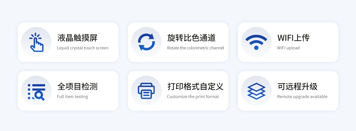 | 12. 遠(yuǎn)程升級功能 | 儀器具備遠(yuǎn)程升級功能,可定向分客戶分儀器更新,開機(jī)后自動更新,并可持續(xù)性免費更新系統(tǒng)版本。 |